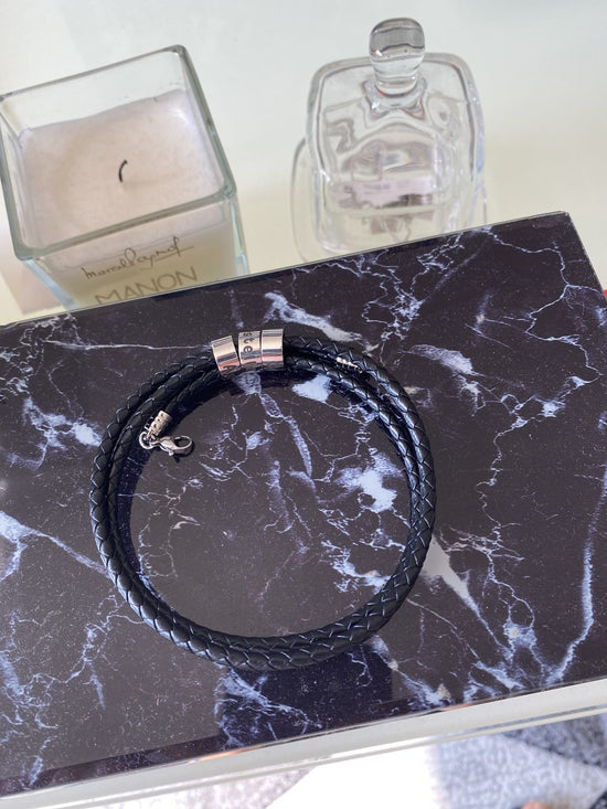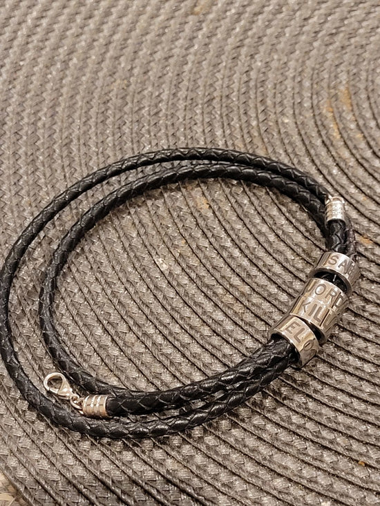 Pulsera de Hombre de Cuero Negro – Personalizable con Acabados en Plateado o Oro